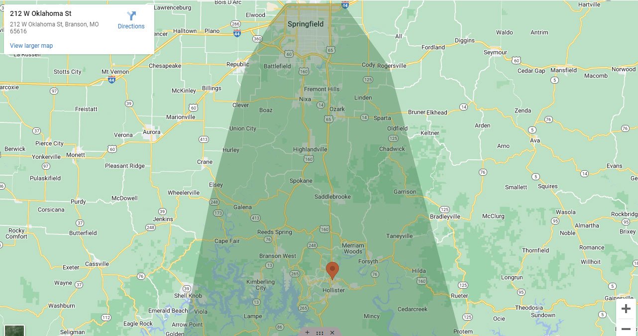 Cities Served: Branson, Branson West, Springfield, Hollister, Ozark, Highlandville, Nixa, Spokane, Forsyth, Kimberling City, Lampe, Blue Eye, Shell Knob, Protem, Rockaway Beach, Walnut Shade, Clever and Taneyville. Counties Served: Taney, Stone, Greene and Christian